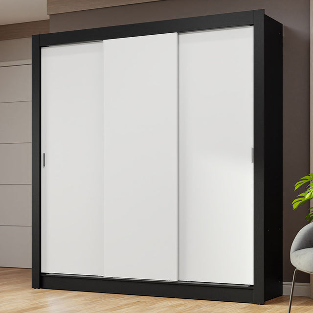 Placard Matrimonial 3 Puertas Corredizas Negro/Blanco Nobre