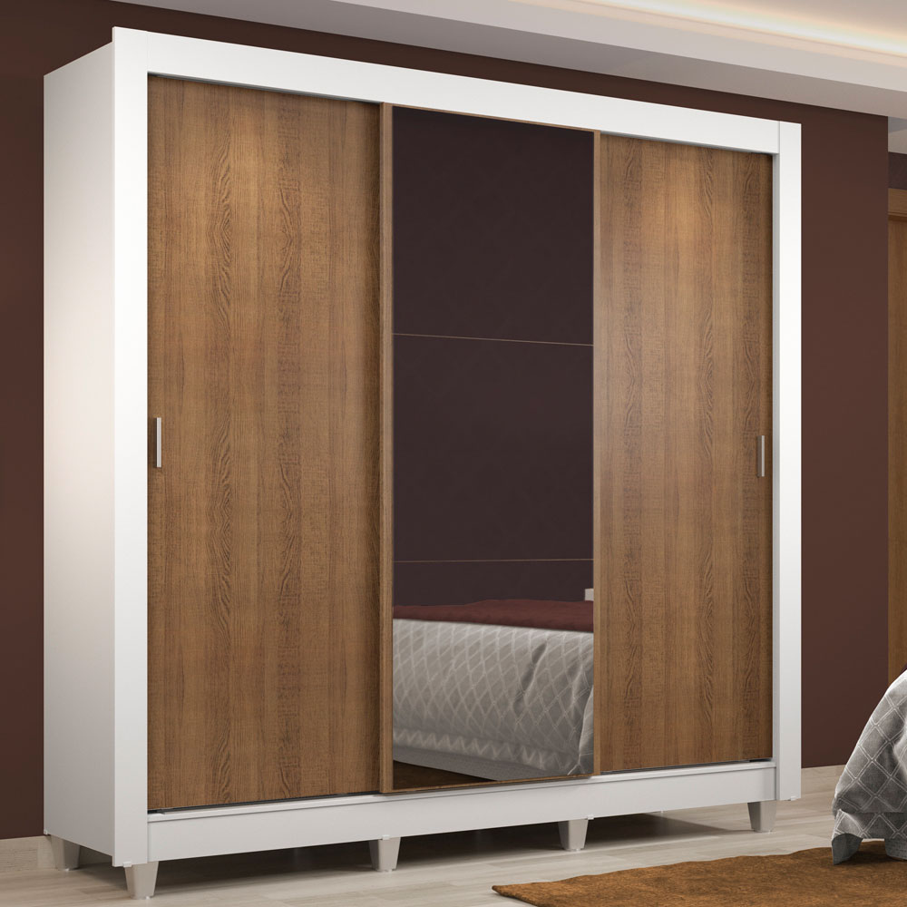 Placard Matrimonial Lyon 3 Puertas Corredizas con Espejo 2 Cajones con Patas Blanco/Marrón