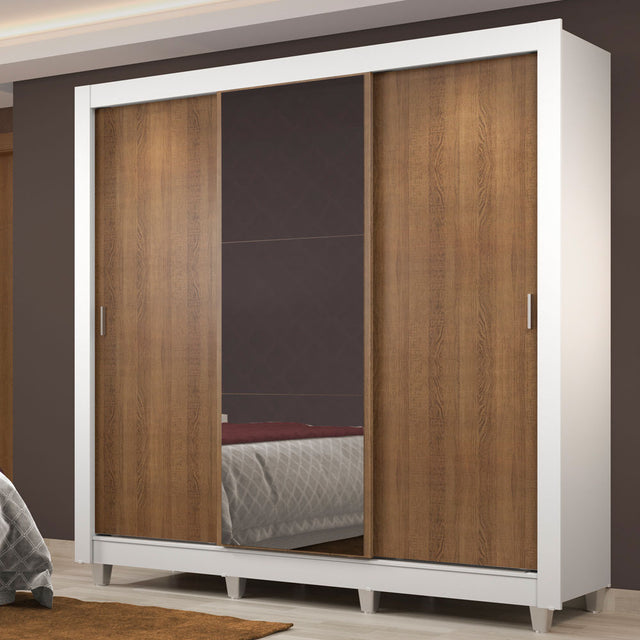 Placard Matrimonial Lyon Plus 3 Puertas Corredizas con Espejo 4 Cajones con Patas Blanco/Marrón
