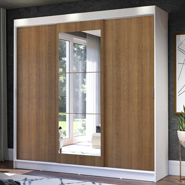 Placard Ropero Casal Madesa Istambul 3 Puertas Corredizas con Espejo 3 Cajones Blanco/Marrón