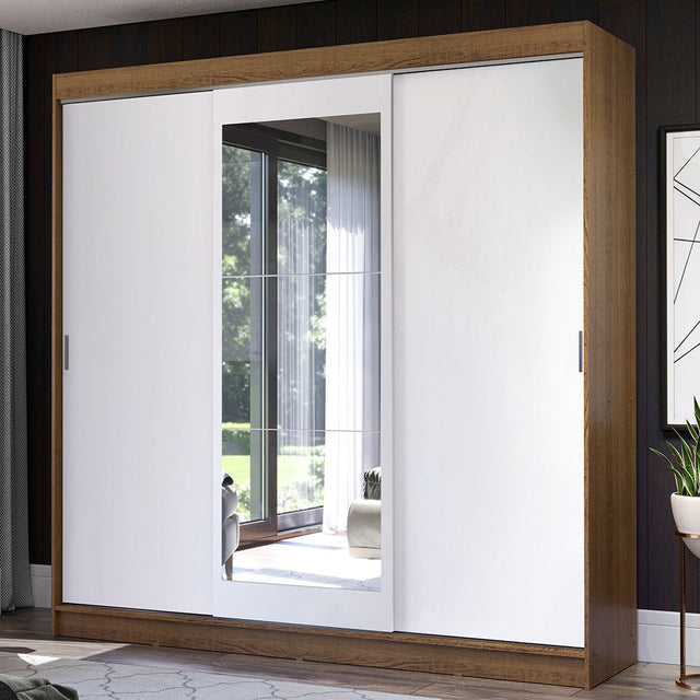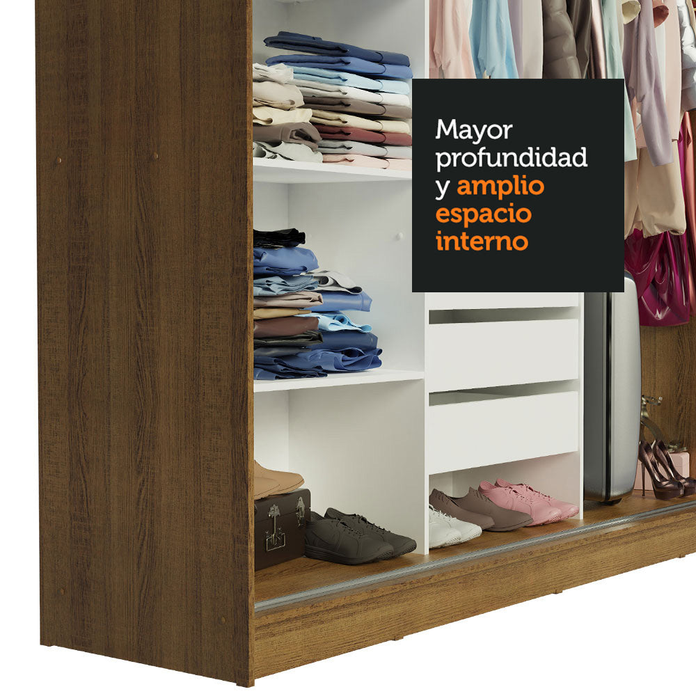 Placard Ropero Casal Madesa Istambul 3 Puertas Corredizas con Espejo 3 Cajones Marrón/Blanco