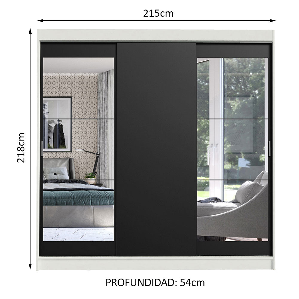 Placard Ropero Casal Madesa Istambul 3 Puertas Corredizas con Espejos 3 Cajones Blanco/Negro
