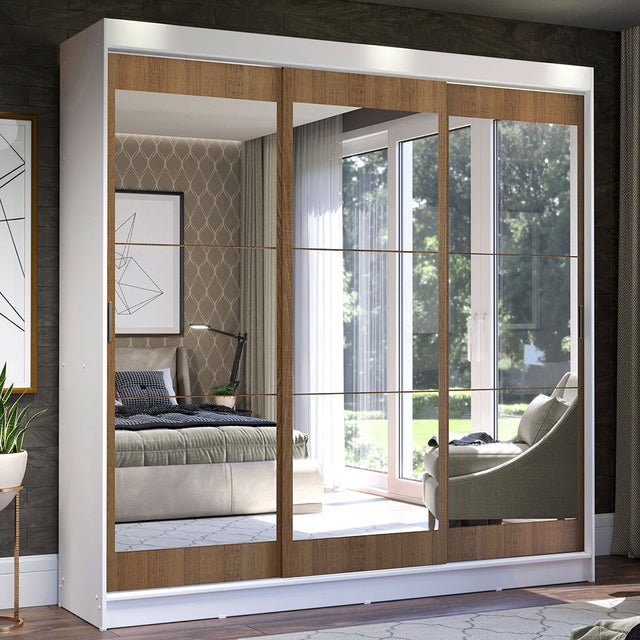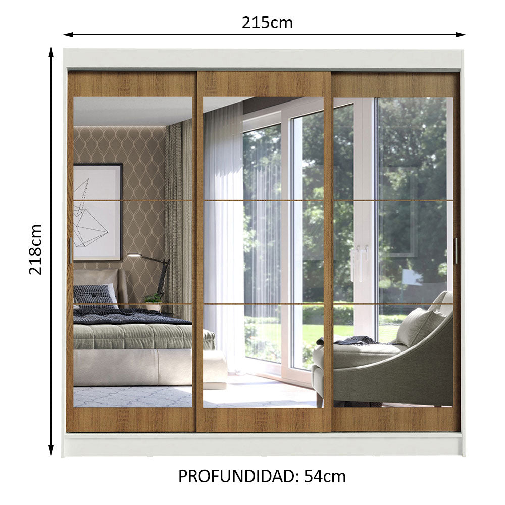 Placard Ropero Casal Madesa Istambul 3 Puertas Corredizas de Espejo 3 Cajones Blanco/Marrón