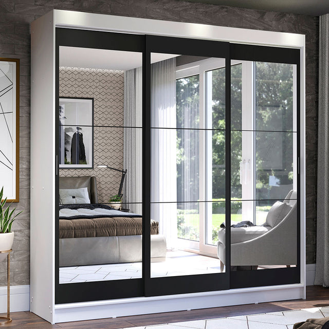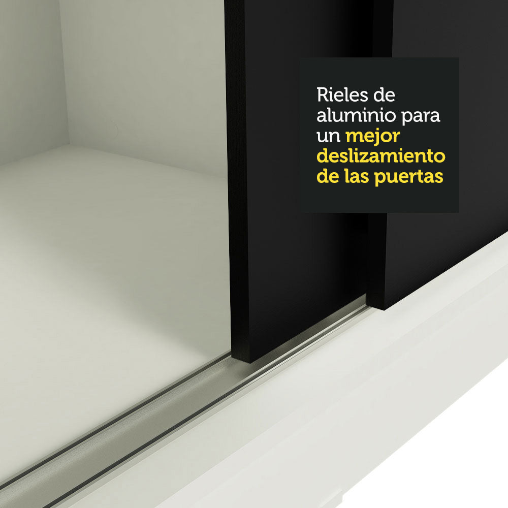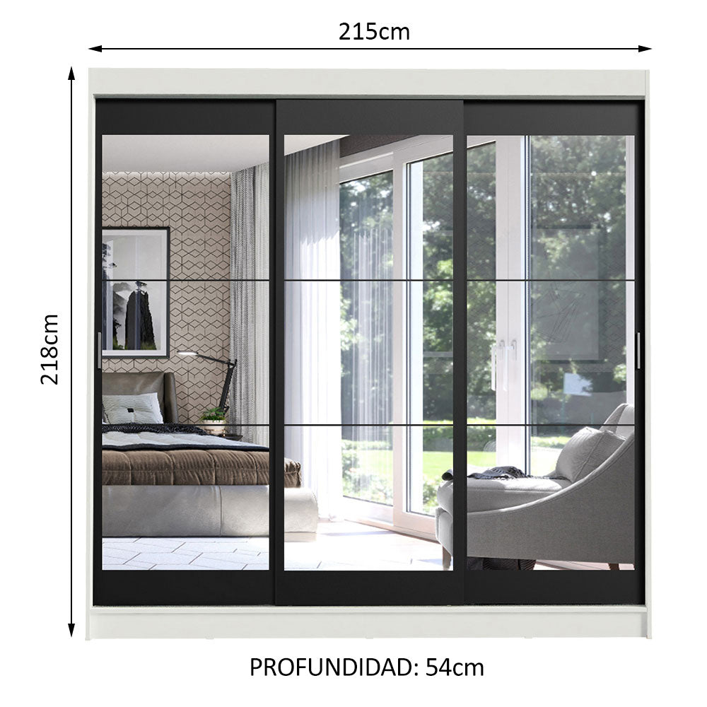 Placard Ropero Casal Madesa Istambul 3 Puertas Corredizas de Espejo 3 Cajones Blanco/Negro