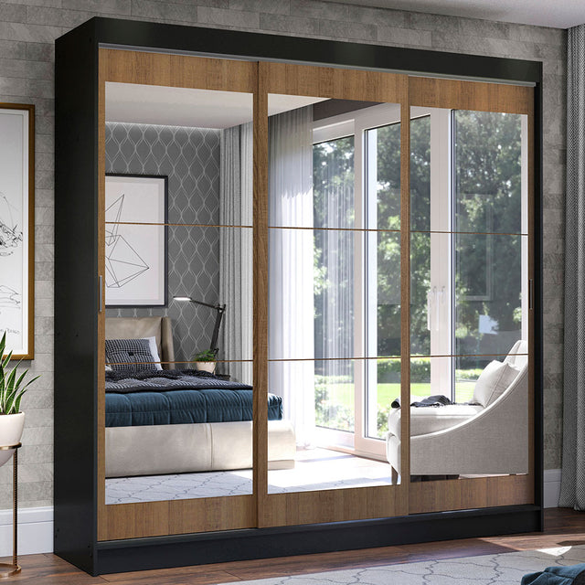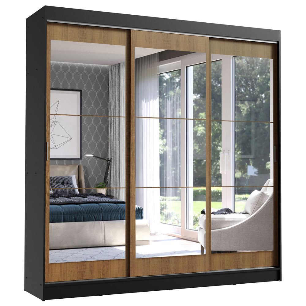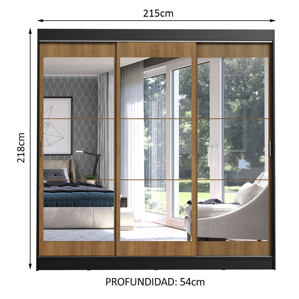 Placard Ropero Casal Madesa Istambul 3 Puertas Corredizas de Espejo 3 Cajones Negro/Marrón