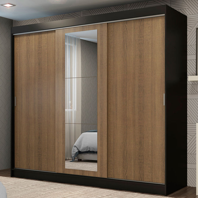 Placard Ropero Casal Madesa Kansas 3 Puertas Corredizas con Espejo 3 Cajones Negro/Marrón
