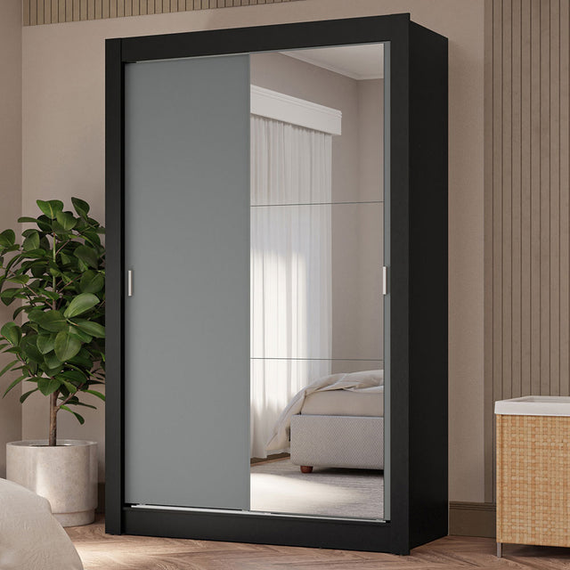 Placard Soltero 2 Puertas Corredizas con Espejo 4 Cajones Negro/Gris Vivare Plus