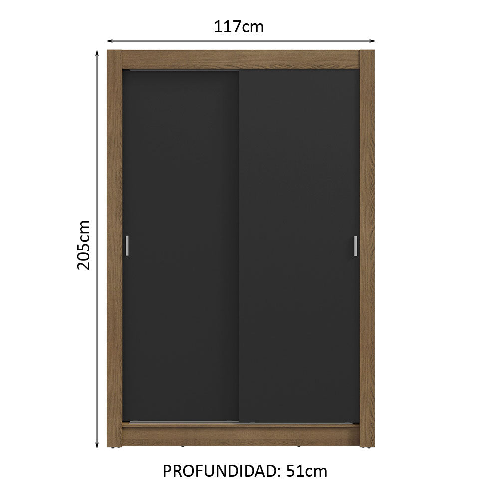 Placard Soltero 2 Puertas Corredizas Marrón/Negro Milano