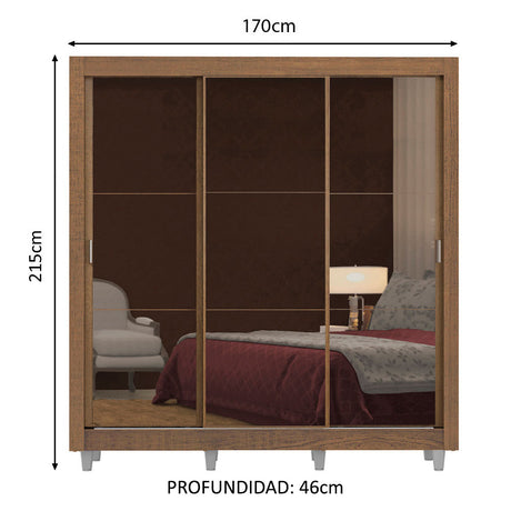 Placard Matrimonial Lyon 3 Puertas Corredizas con Espej...