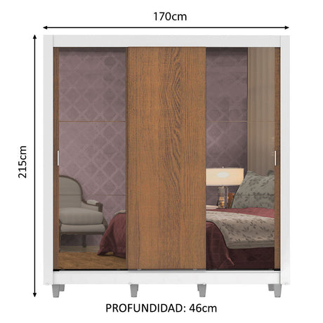 Placard Matrimonial Lyon 3 Puertas Corredizas con Espej...