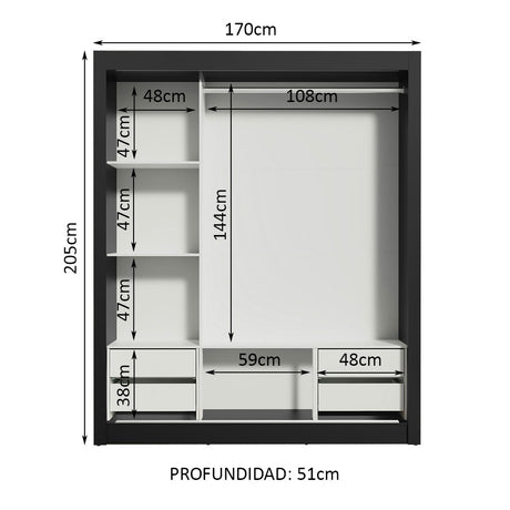 Placard Soltero Dallas 2 Puertas Corredizas con Espejo ...