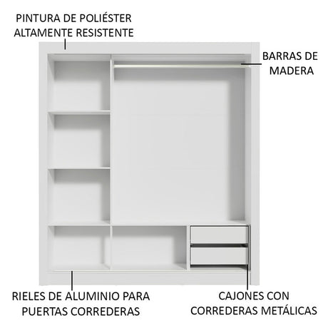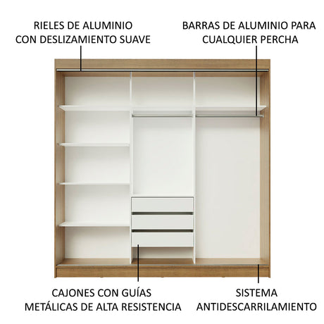 Placard Matrimonial Lyon 3 Puertas Corredizas 2 Cajones...