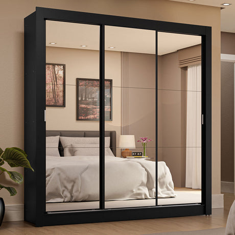 Placard Matrimonial 3 Puertas Corredizas de Espejo Negr...