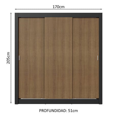 Placard Matrimonial 3 Puertas Corredizas Negro/Marrón S...