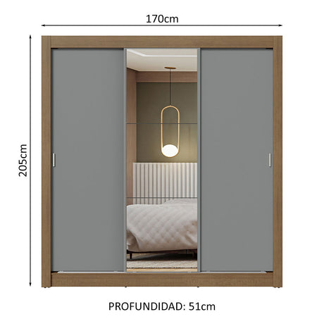 Placard Matrimonial 3 Puertas Corredizas Marrón/Gris No...