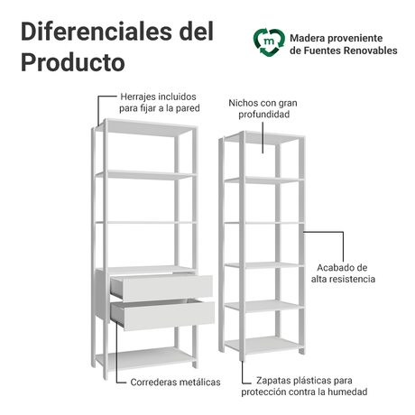 Placard Ropero Modulado 2 Cajones 9 Repisas 129 cm Blan...
