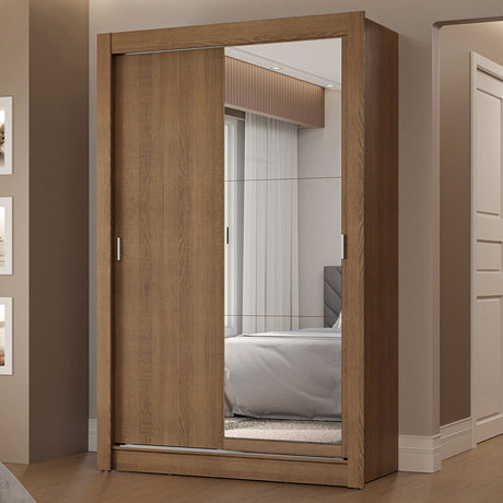 Placard Soltero 2 Puertas Corredizas con Espejo Marrón/...