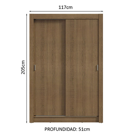 Placard Soltero 2 Puertas Corredizas Marrón Milano