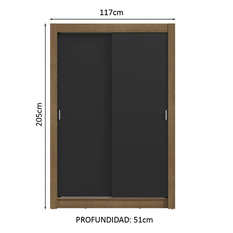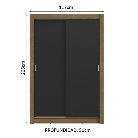 Placard Soltero 2 Puertas Corredizas 2 Cajones Marrón/N...