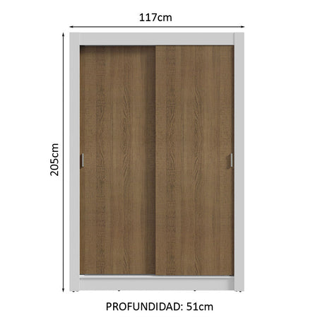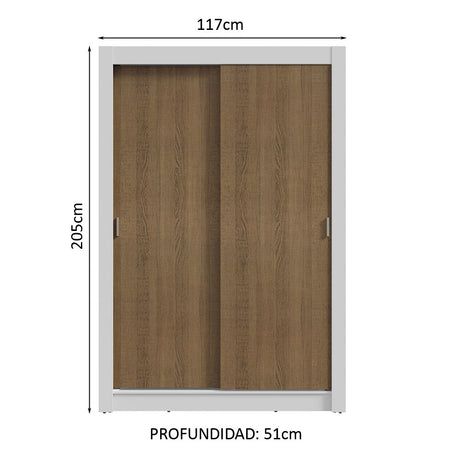 Placard Soltero 2 Puertas Corredizas Blanco/Marrón Mila...