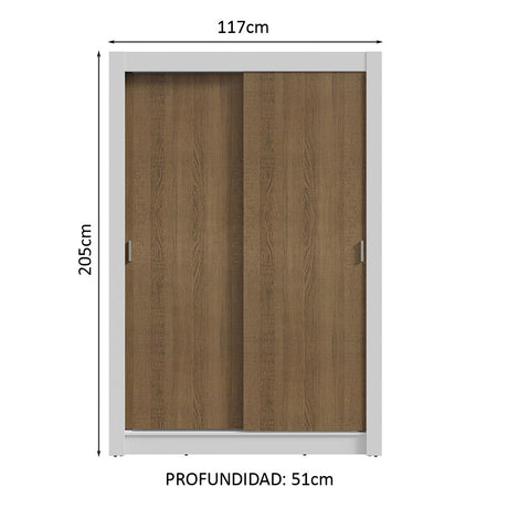 Placard Soltero 2 Puertas Corredizas Blanco/Gris Milano