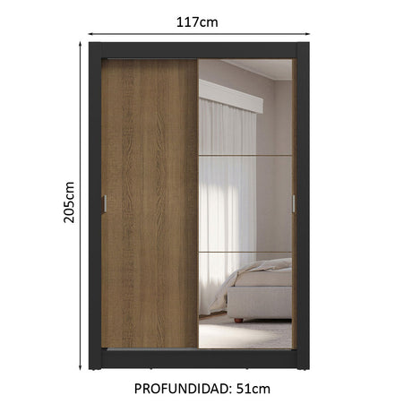 Placard Soltero 2 Puertas Corredizas con Espejo Negro/M...