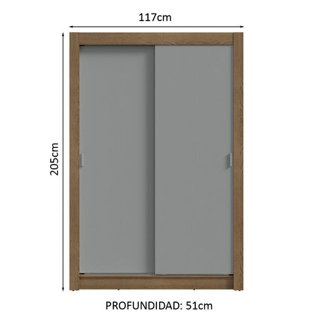 Placard Soltero 2 Puertas Corredizas Marrón/Gris Milano