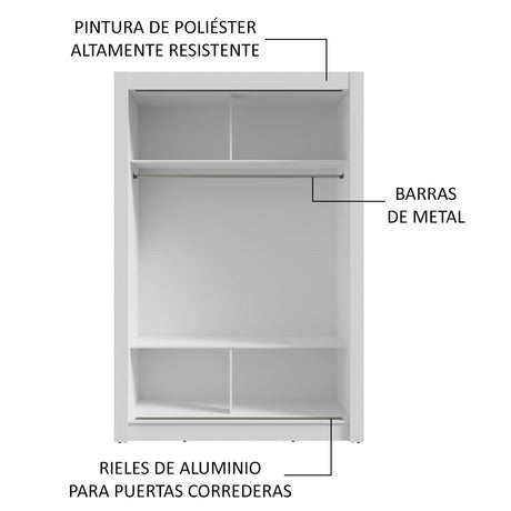 Placard Soltero 2 Puertas Corredizas con Espejo Blanco/...
