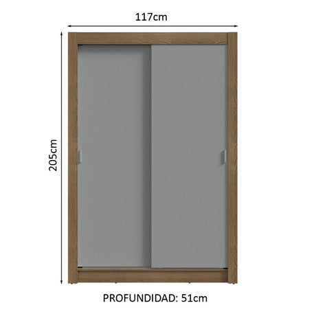 Placard Soltero 2 Puertas Corredizas 4 Cajones Marrón/G...