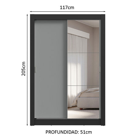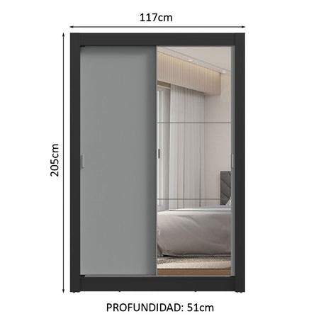 Placard Soltero 2 Puertas Corredizas con Espejo Negro/G...
