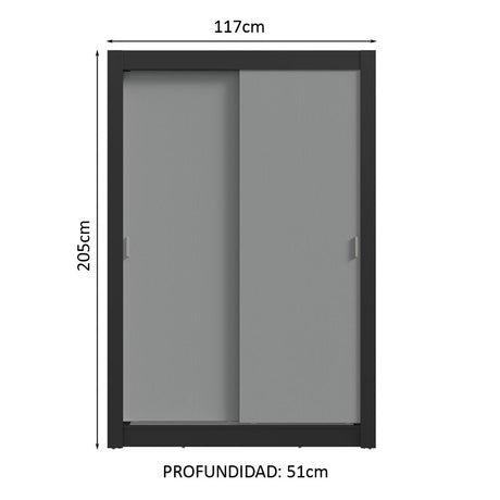 Placard Soltero 2 Puertas Corredizas Negro/Gris Milano