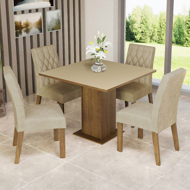 Juego de Comedor Mesa con Tapa de Madera 4 Sillas Livia Madesa - Marrón/Crema/Imperial