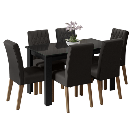 Conjunto Comedor Mesa Mesada de Vidro 6 Sillas Negro/Ma...