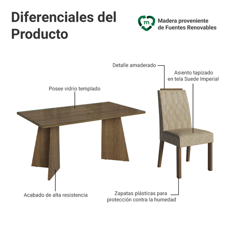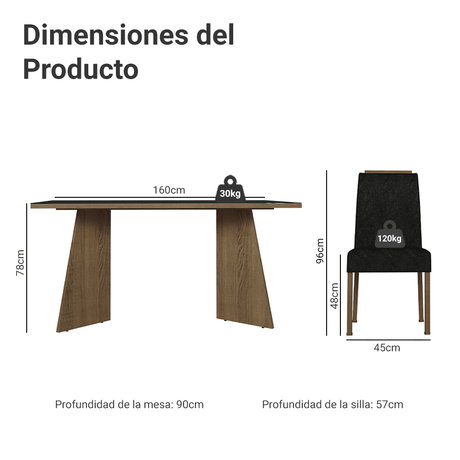 9x de $94.948,89 sin interés$854.53999Precio unitario /AgotadoJuego de Comedor Mesada de Vidrio 6 Sillas Madrid Marró...