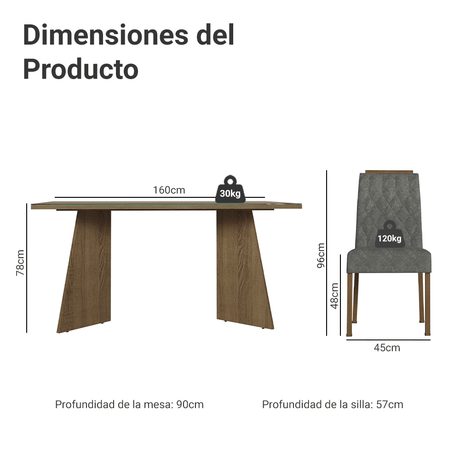 9x de $85.453,33 sin interés$769.07999Precio unitario /AgotadoJuego de Comedor Mesada de Madera 6 Sillas Leon Marrón/...