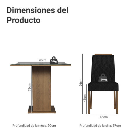 9x de $49.846,67 sin interés$448.61999Precio unitario /AgotadoJuego de Comedor Mesada de Vidrio 4 Sillas Capri Marrón...