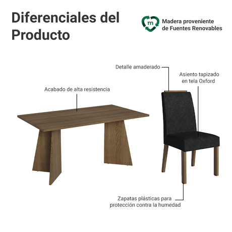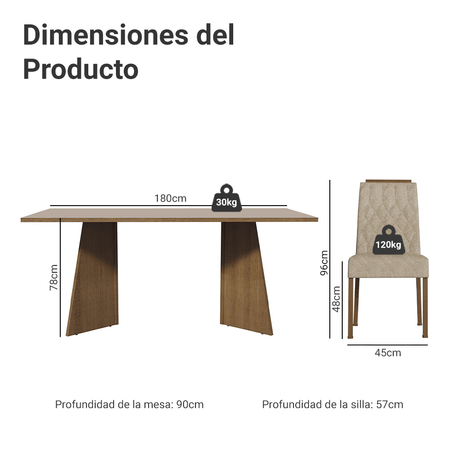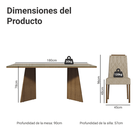 Juego de Comedor Mesada de Madera 6 Sillas Soho Marrón/...