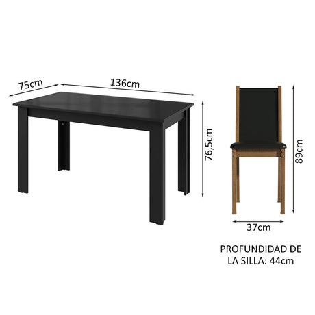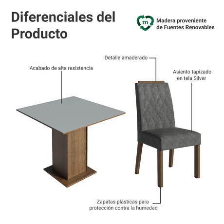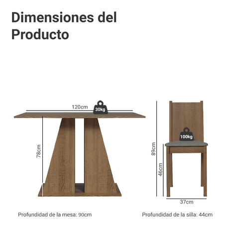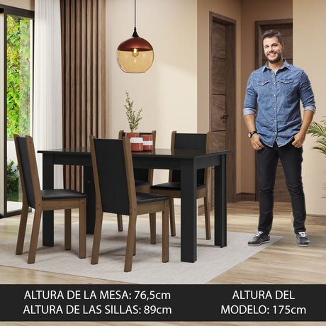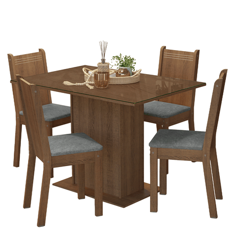 Juego de Comedor Mesada de Madera 4 Sillas Cannes Marró...