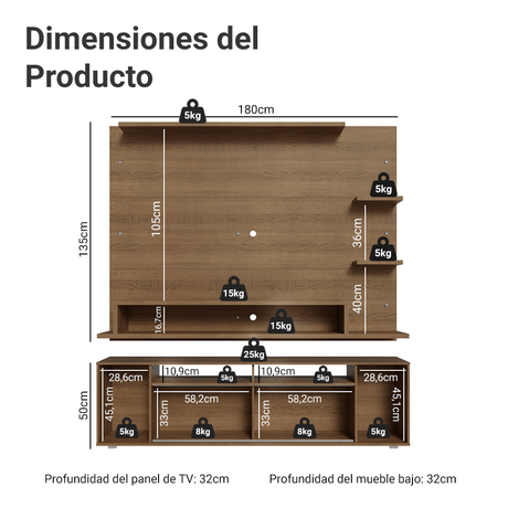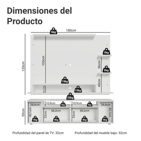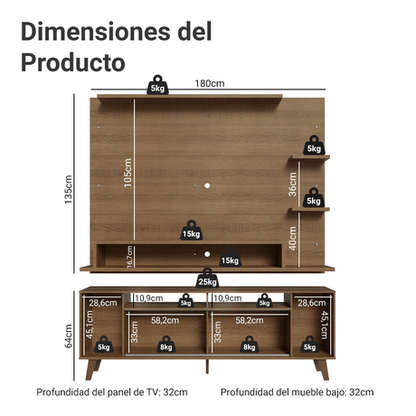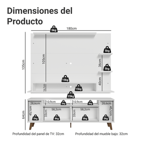 Rack con Panel para TV hasta 60 Pulgadas 180 cm con Pat...