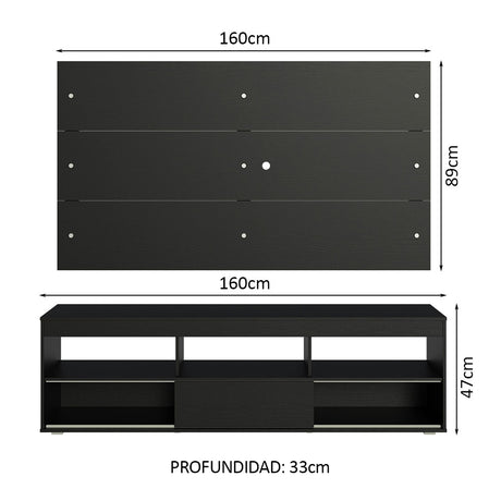 Rack con Panel para TV hasta 65 Pulgadas Negro Orlando ...