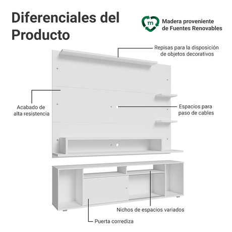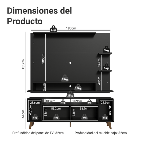 Rack con Panel para TV hasta 60 Pulgadas 180 cm con Pat...