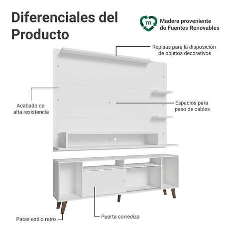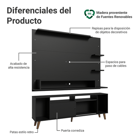 Rack Madesa Dubai para TV hasta 65 Pulgadas con Patas N...