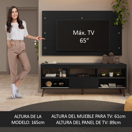 Rack con Panel para TV hasta 65 Pulgadas con Patas Negr...