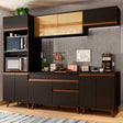 - Es necesario fijar en la pared armarios superiores y el mueble para hornos