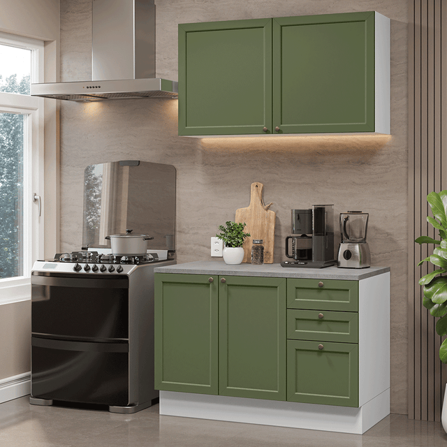 Cocina Compacta 120 cm Vik Blanco/Verde 01