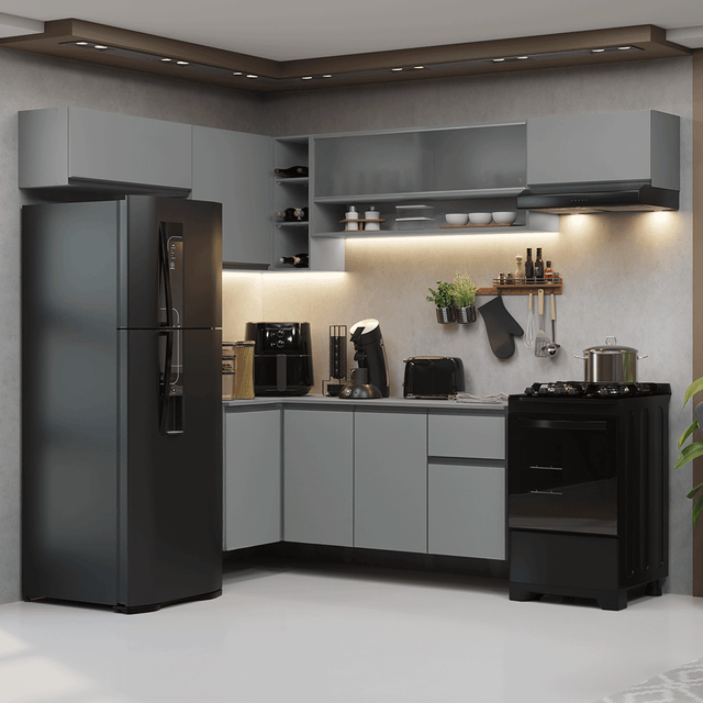 Combo completo de Cocina Esquinera Flotante 405cm Gris Nice Madesa 03