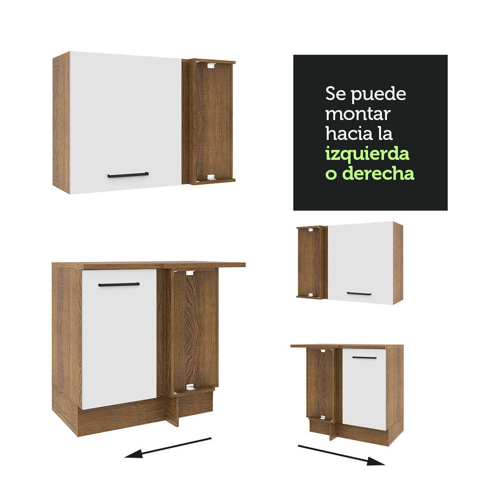 Además, dispone de un pistón de gas en la puerta rebatible. La cocina permite organizar los gabinetes y mesadas según las necesidades de tu espacio. La esquina se puede montar tanto en el lado izquierdo como en el derecho.