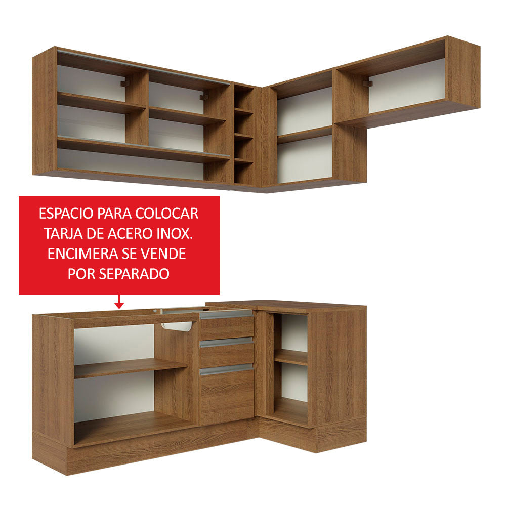 Combo completo de Cocina Esquinera 349cm Marrón Glamy Madesa 06