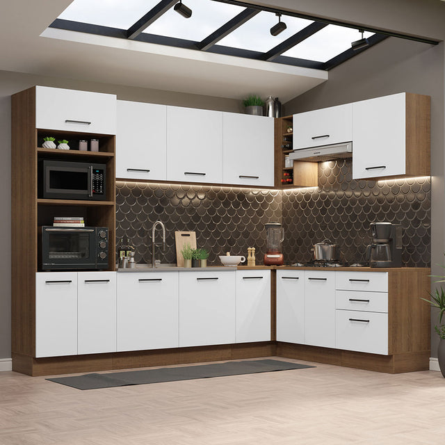 Combo completo de Cocina Esquinera 479cm Marrón/Blanco Agata Madesa 01