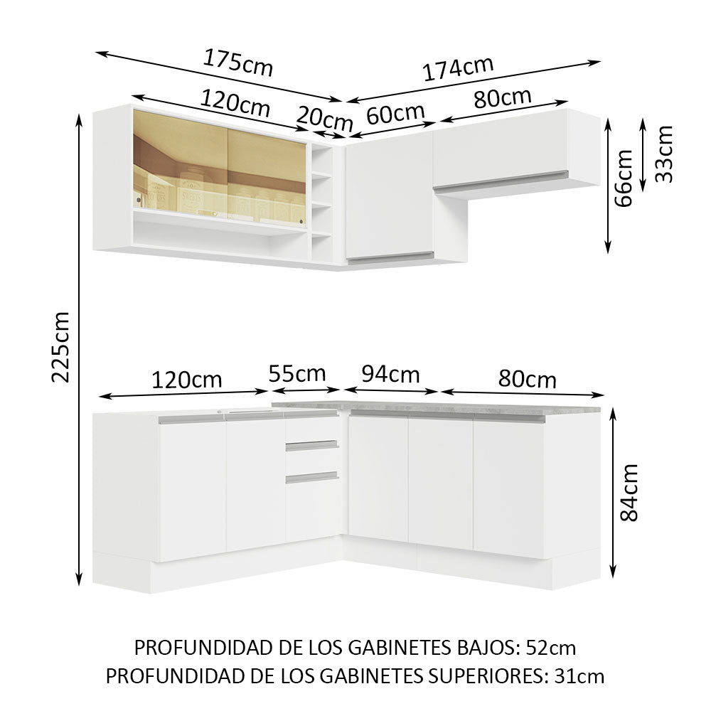 Combo completo de Cocina Esquinera Madesa Glamy Sin Mesón De Acero